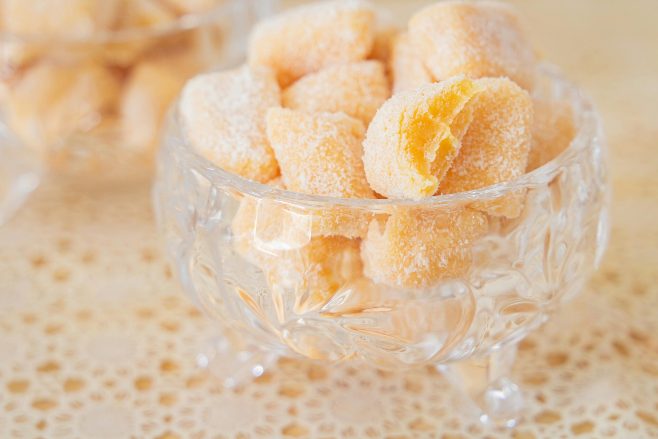 Kẹo xoài được làm từ xoài chín tự nhiên, cô đặc thành từng viên kẹo dẻo mềm, giữ trọn vị chua nhẹ và ngọt thanh đặc trưng. Khi ăn cảm nhận rõ hương xoài thơm dịu, không gắt, không quá ngọt – phù hợp ăn vặt mỗi ngày.